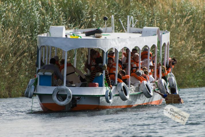 Det lyder hyggeligt med en tur til en Nubisk landsby ikke? Når der blev sagt landsby, forestillede jeg mig lidt primitive huse og folk om en bålplads, men det idylliske billede i mit hoved ændrede sig allerede på sejlturen til landsbyen. Efterhånden som vi sejlede fra hotellet blev vi snart ledsaget af den ene turistbåd efter den anden og endte med en hel karavane med samme destination: Den nubiske landsby. Undervejs på sejlturen blev vi “ledsaget” af tiggere – børn der enten svømmede eller sejlede ud til turistbådene for at tigge penge. De hægtede sig på siden af bådene og råbte til os i håbet om at nogen forbarmede sig over dem og gav dem penge. Første indtryk da vi lagde til land var “Gedemarked” eller efter egyptiske terminologi “kamelmarked” iblandet lidt tivoli. Fra bådene gik vi op ad en stejl stensætning og lige ovenfor den lå vejen vi skulle følge på vores tur rundt. Det var den vej ALLE fulgte – kameler med turister inclusive og snart blev der råbt “Pas på, der kommer kameler…” og vi sprang til siderne for bogstavelig talt ikke at blive rendt ned, for de kom lydløst og stærkt. En ældre herre med stok fra vores gruppe blev faktisk ramt men holdt sig oprejst og tog det med et smil. Vores første mål på turen var en nubisk skole og vejen derhen var fyldt op med boder med turistgejl, “Egyptisk bomuld” og krydderier. Altsammen tilsat store mængder af støv fra den stærkt trafikerede kamelrute. De krydderier må da smage af lidt ekstra skulle man synes. Vi ankom til den nubiske skole, hvor vi blev ført ind i et klasselokale og fik vores egen lærer, der skulle forsøge at lære os en smule af det nubiske sprog. Efter lidt undervisning blev enkelte “hørt” i det lærte og kunne man ikke sine ting, blev man slæbt op til tavlen for at få “klø” af lærerens pegepind. Og så var det mine tæer begyndte at krølle. Den slags turistskuespil kan jeg bare ikke døje, og jeg finder dem ganske usmagelige. Jeg vil rigtig gerne høre om nubierne, deres fortid og deres sprog men ikke på den måde. Det autentiske ved at besøge en landsby går fuldstændig fløjten i søgen efter at underholde turisterne. Efter skoleseancen gik vi op taget af skolen, hvor der var en fantastisk udsigt over hele landsbyen og Nilen helt ned til Aswan dæmningen. Siden fortsatte vi til vores nubiske værtsfamilie, der havde været så venlige at åbne deres hjem for os. De var utroligt søde, og vi blev alle budt på noget at drikke ved ankomsten. Lidt surrealistisk at sidde der i et autentisk nubisk hus med Coca Cola flasker i lange baner 🙂 I stuen havde de en støbt kasse med små krokodiller. Ja, det virker en anelse underligt på mig, men det er måske ikke mere unormalt, end at vi har en kattebakke til vores kræ i bryggerset. De små “diller” blev forsøgt “tirret” til at reagere på os, ved at vifte med en klud nede i kassen. Den ene blev taget ud til skue og bestemt håndteret blidt og venligt af manden i huset. Jeg tror da, de er flinke ved deres dyr, men et eller andet sted, bryder jeg mig bare ikke om, at vilde dyr skal bruges til underholdning for os turister. Alt i alt tog jeg personligt fra landsbyen med en følelse af at være en “rigtig turist”, hvilket jeg ikke bryder mig om. Jeg havde forventet måske at kunne tage derfra med et smil på læben – istedet havde jeg en lidt dårlig smag i munden. En mere rolig respektfuld tilgang til tingene istedet for det karneval med turister i stride strømme ville have passet bedre til forventningerne. Der kunne have været masser af muligheder for et mere autentisk besøg, hvor vi kunne have fået ro til at indsnuse atmosfæren i byen og fået nogle gode fotos af de meget imødekommende beboere. Istedet blev det hele sovset til i turistlir af værste skuffe. Kommer jeg til Egypten igen, så vil jeg gerne være den oplevelse foruden.
