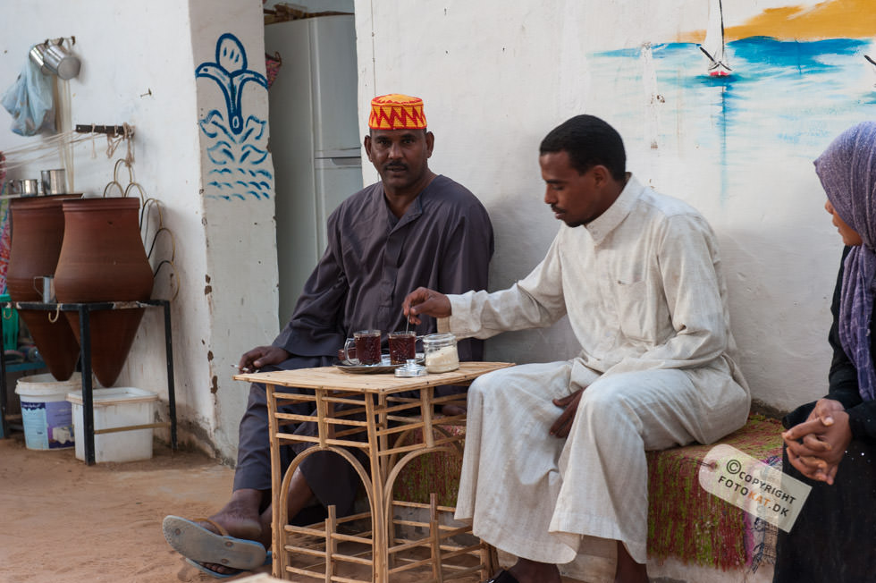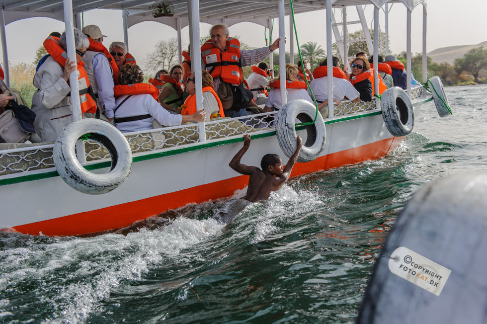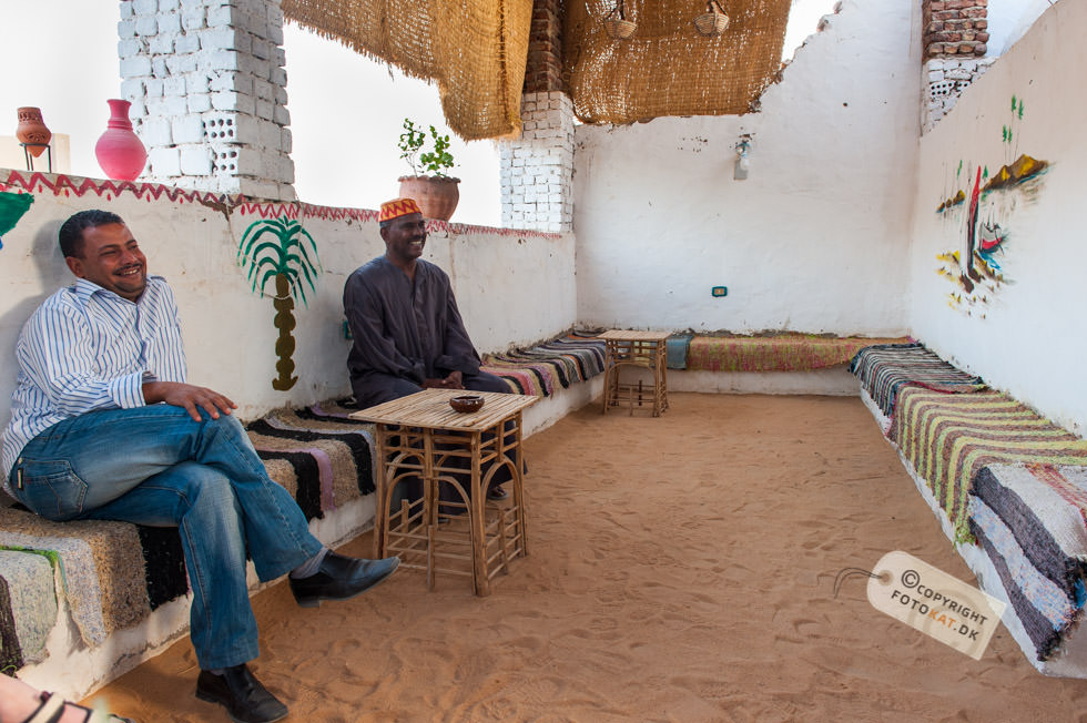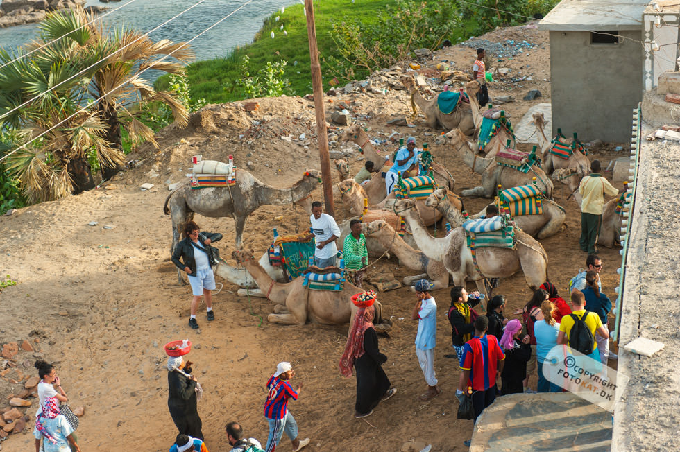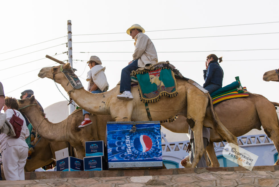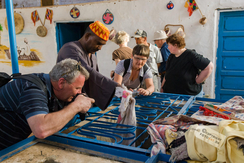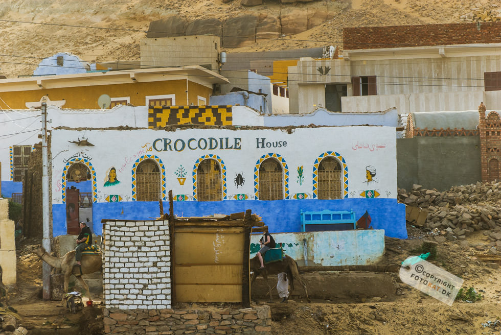Det lyder hyggeligt med en tur til en Nubisk landsby ikke? Når der blev sagt landsby, forestillede jeg mig lidt primitive huse og folk om en bålplads, men det idylliske billede i mit hoved ændrede sig allerede på sejlturen til landsbyen. Efterhånden som vi sejlede fra hotellet blev vi snart ledsaget af den ene turistbåd efter den anden og endte med en hel karavane med samme destination: Den nubiske landsby. Undervejs på sejlturen blev vi “ledsaget” af tiggere – børn der enten svømmede eller sejlede ud til turistbådene for at tigge penge. De hægtede sig på siden af bådene og råbte til os i håbet om at nogen forbarmede sig over dem og gav dem penge. Første indtryk da vi lagde til land var “Gedemarked” eller efter egyptiske terminologi “kamelmarked” iblandet lidt tivoli. Fra bådene gik vi op ad en stejl stensætning og lige ovenfor den lå vejen vi skulle følge på vores tur rundt. Det var den vej ALLE fulgte – kameler med turister inclusive og snart blev der råbt “Pas på, der kommer kameler…” og vi sprang til siderne for bogstavelig talt ikke at blive rendt ned, for de kom lydløst og stærkt. En ældre herre med stok fra vores gruppe blev faktisk ramt men holdt sig oprejst og tog det med et smil. Vores første mål på turen var en nubisk skole og vejen derhen var fyldt op med boder med turistgejl, “Egyptisk bomuld” og krydderier. Altsammen tilsat store mængder af støv fra den stærkt trafikerede kamelrute. De krydderier må da smage af lidt ekstra skulle man synes. Vi ankom til den nubiske skole, hvor vi blev ført ind i et klasselokale og fik vores egen lærer, der skulle forsøge at lære os en smule af det nubiske sprog. Efter lidt undervisning blev enkelte “hørt” i det lærte og kunne man ikke sine ting, blev man slæbt op til tavlen for at få “klø” af lærerens pegepind. Og så var det mine tæer begyndte at krølle. Den slags turistskuespil kan jeg bare ikke døje, og jeg finder dem ganske usmagelige. Jeg vil rigtig gerne høre om nubierne, deres fortid og deres sprog men ikke på den måde. Det autentiske ved at besøge en landsby går fuldstændig fløjten i søgen efter at underholde turisterne. Efter skoleseancen gik vi op taget af skolen, hvor der var en fantastisk udsigt over hele landsbyen og Nilen helt ned til Aswan dæmningen. Siden fortsatte vi til vores nubiske værtsfamilie, der havde været så venlige at åbne deres hjem for os. De var utroligt søde, og vi blev alle budt på noget at drikke ved ankomsten. Lidt surrealistisk at sidde der i et autentisk nubisk hus med Coca Cola flasker i lange baner 🙂 I stuen havde de en støbt kasse med små krokodiller. Ja, det virker en anelse underligt på mig, men det er måske ikke mere unormalt, end at vi har en kattebakke til vores kræ i bryggerset. De små “diller” blev forsøgt “tirret” til at reagere på os, ved at vifte med en klud nede i kassen. Den ene blev taget ud til skue og bestemt håndteret blidt og venligt af manden i huset. Jeg tror da, de er flinke ved deres dyr, men et eller andet sted, bryder jeg mig bare ikke om, at vilde dyr skal bruges til underholdning for os turister. Alt i alt tog jeg personligt fra landsbyen med en følelse af at være en “rigtig turist”, hvilket jeg ikke bryder mig om. Jeg havde forventet måske at kunne tage derfra med et smil på læben – istedet havde jeg en lidt dårlig smag i munden. En mere rolig respektfuld tilgang til tingene istedet for det karneval med turister i stride strømme ville have passet bedre til forventningerne. Der kunne have været masser af muligheder for et mere autentisk besøg, hvor vi kunne have fået ro til at indsnuse atmosfæren i byen og fået nogle gode fotos af de meget imødekommende beboere. Istedet blev det hele sovset til i turistlir af værste skuffe. Kommer jeg til Egypten igen, så vil jeg gerne være den oplevelse foruden.